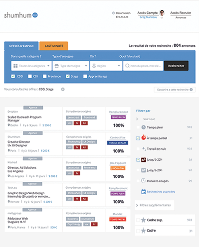 - - Une possibilité de recherche selon ses disponibilités et ses compétences (Shumhum a été pensé et conçu à cet effet)